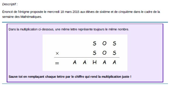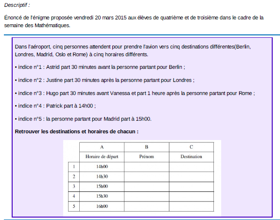 Ci-dessous les énigmes de chaque jour :