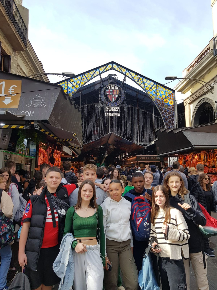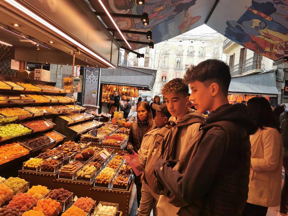 Nous nous sommes arrêtés dans le marché « la Boquería » un des marchés les plus importants d’Espagne. Les élèves se sont régalés avec les spécialités locales : fruits, confiseries, jambons, chocolats…