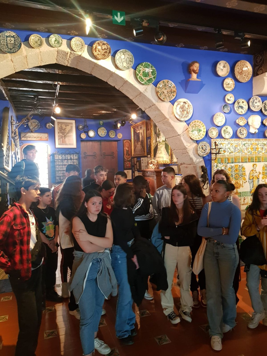 Ensuite, ils ont découvert le musée Cau Ferrat. Consacré à l’art total, ce petit espace, conçu lui même comme une œuvre d’art, est un portail sur le passé. La céramique, la peinture, les sculptures en fer et en verre, la poésie, la musique et les objets du quotidien s’entremêlent pour témoigner de la vie de Santiago Rusiñol des instants vécus, dramaturge peintre et amateur d’art. C’est lui qui est à l’origine de ce musée.