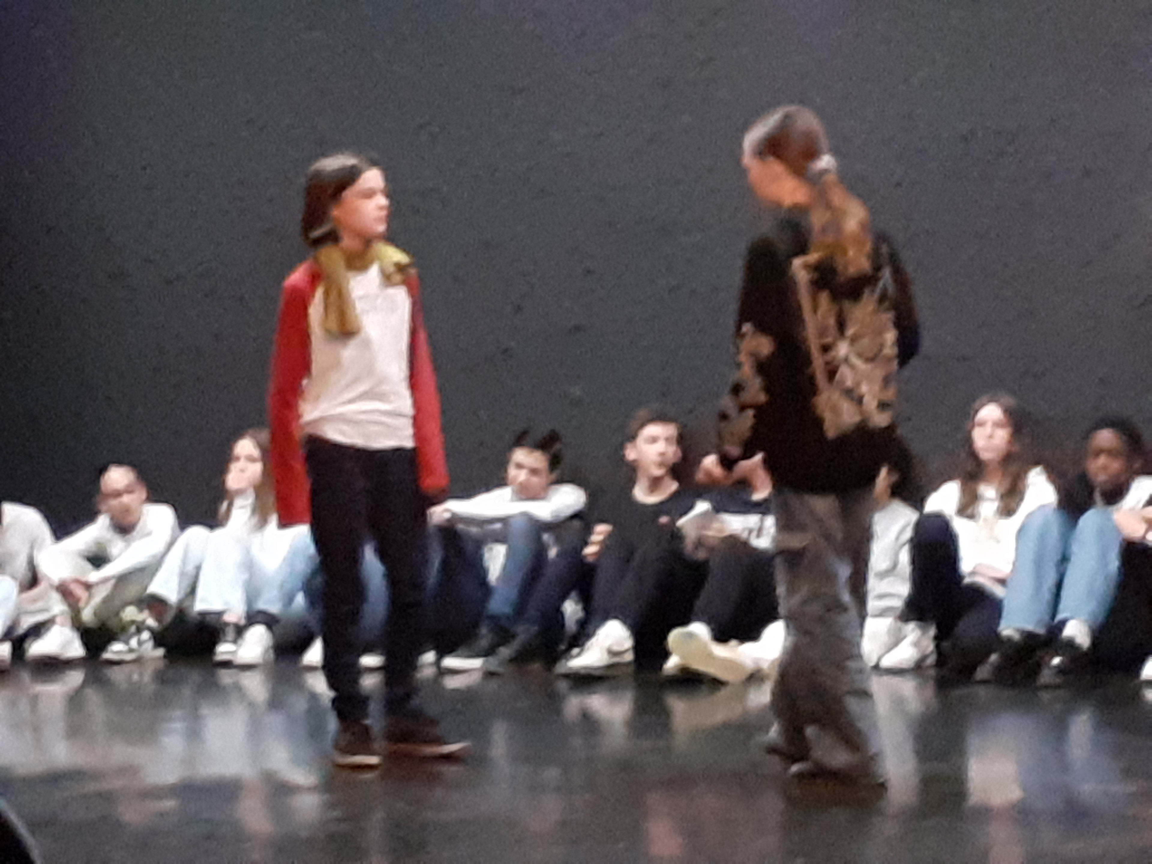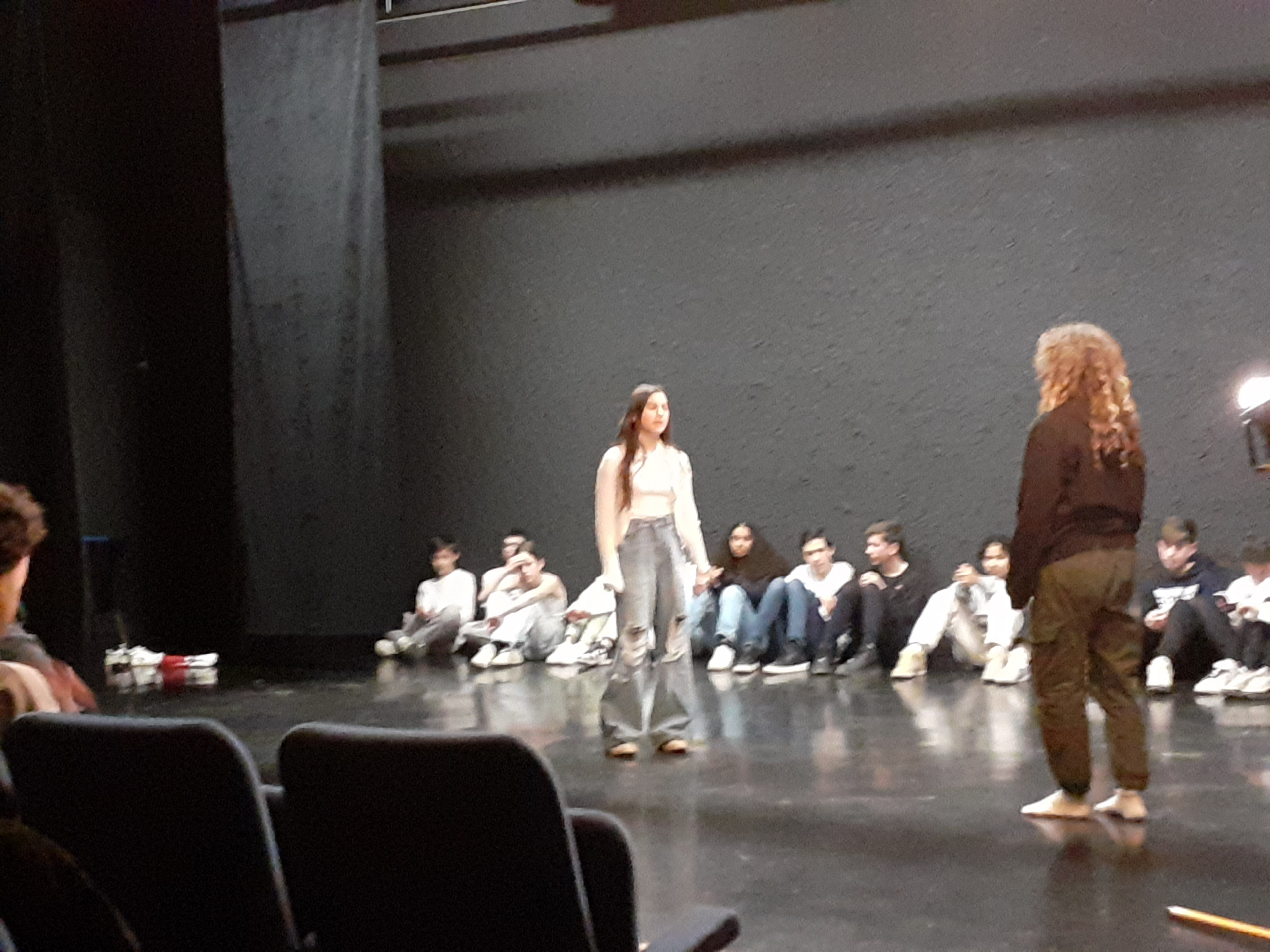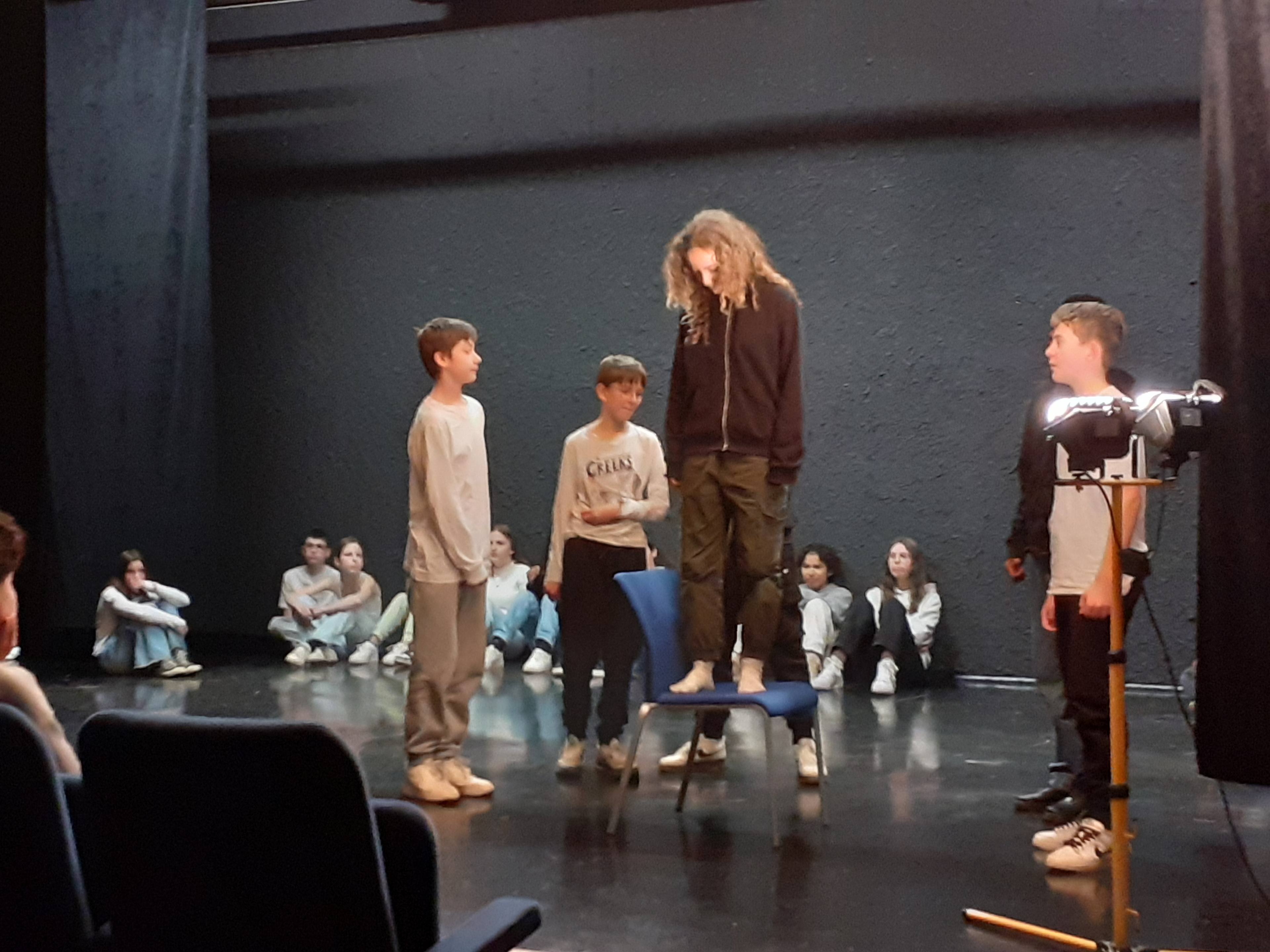 La classe a travaillé en atelier dans la nouvelle salle G. BRASSENS. Une quinzaine d’heures encadrées par l’enseignant et la comédienne. Pour boucler le projet, la pièce a été jouée devant les élèves de la 3e théâtre, des enseignants et le personnel de direction. Pour un chouette résultat.